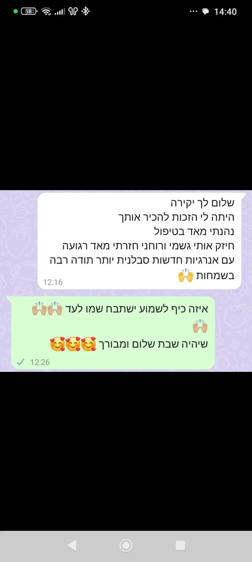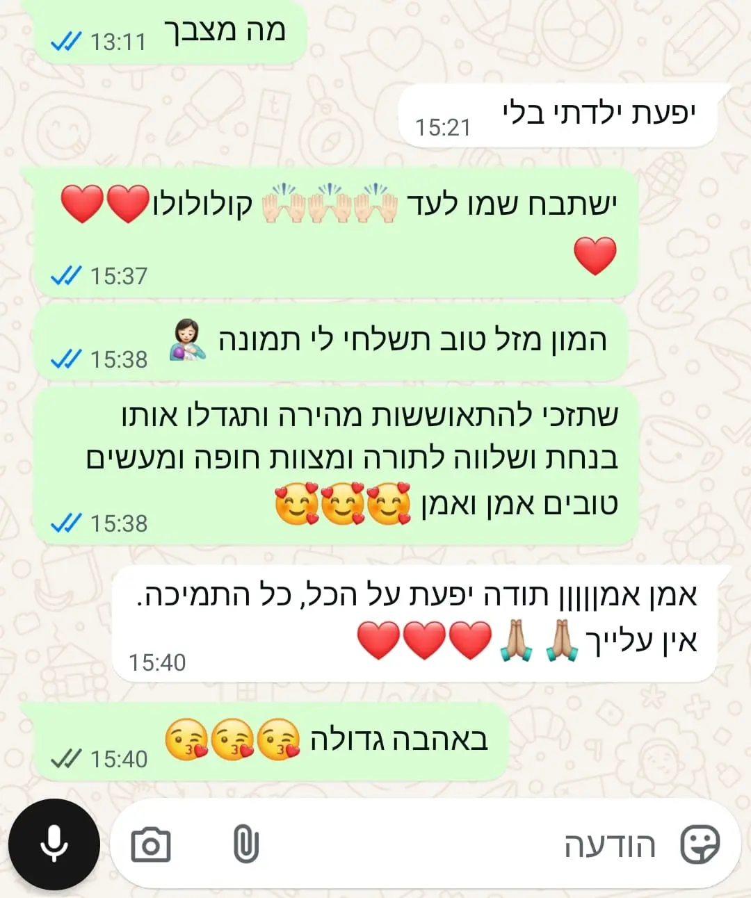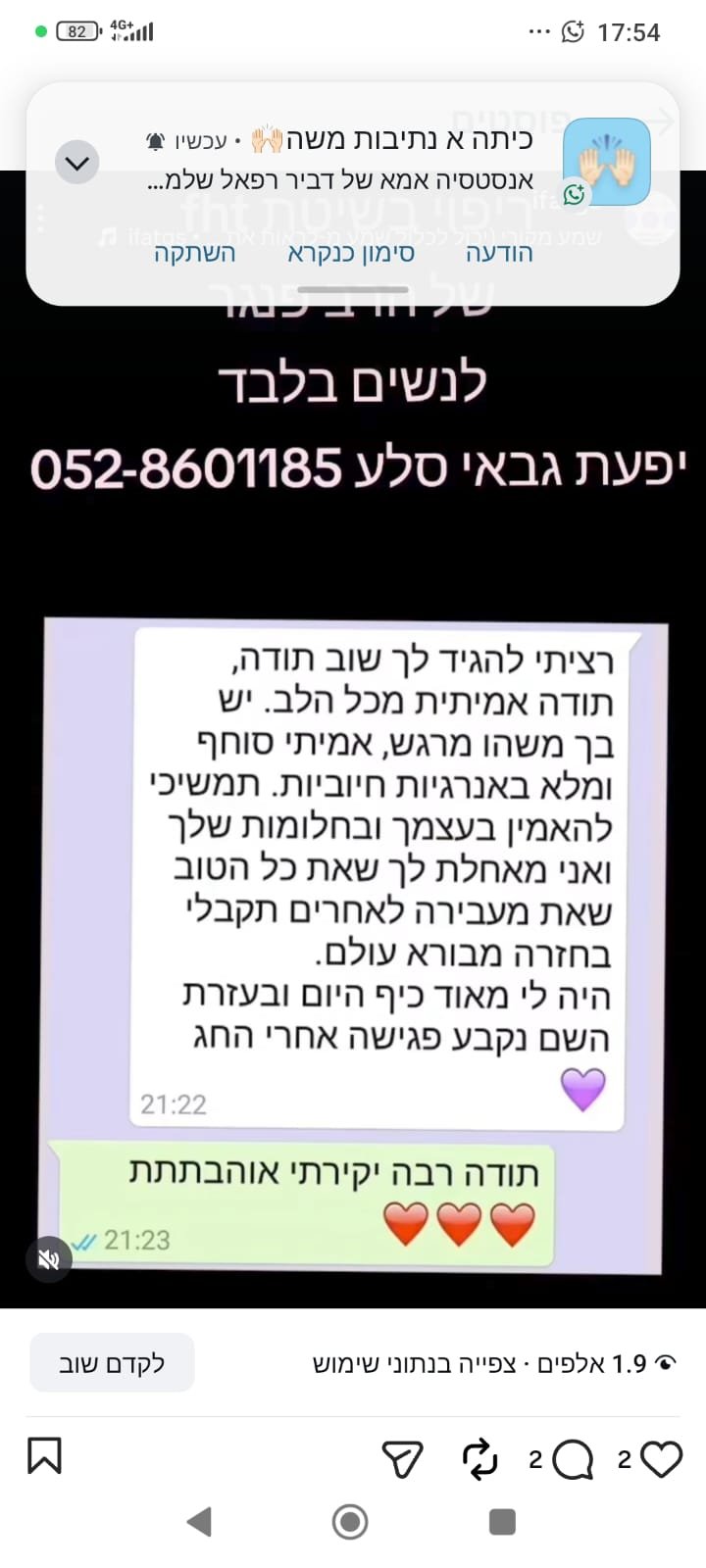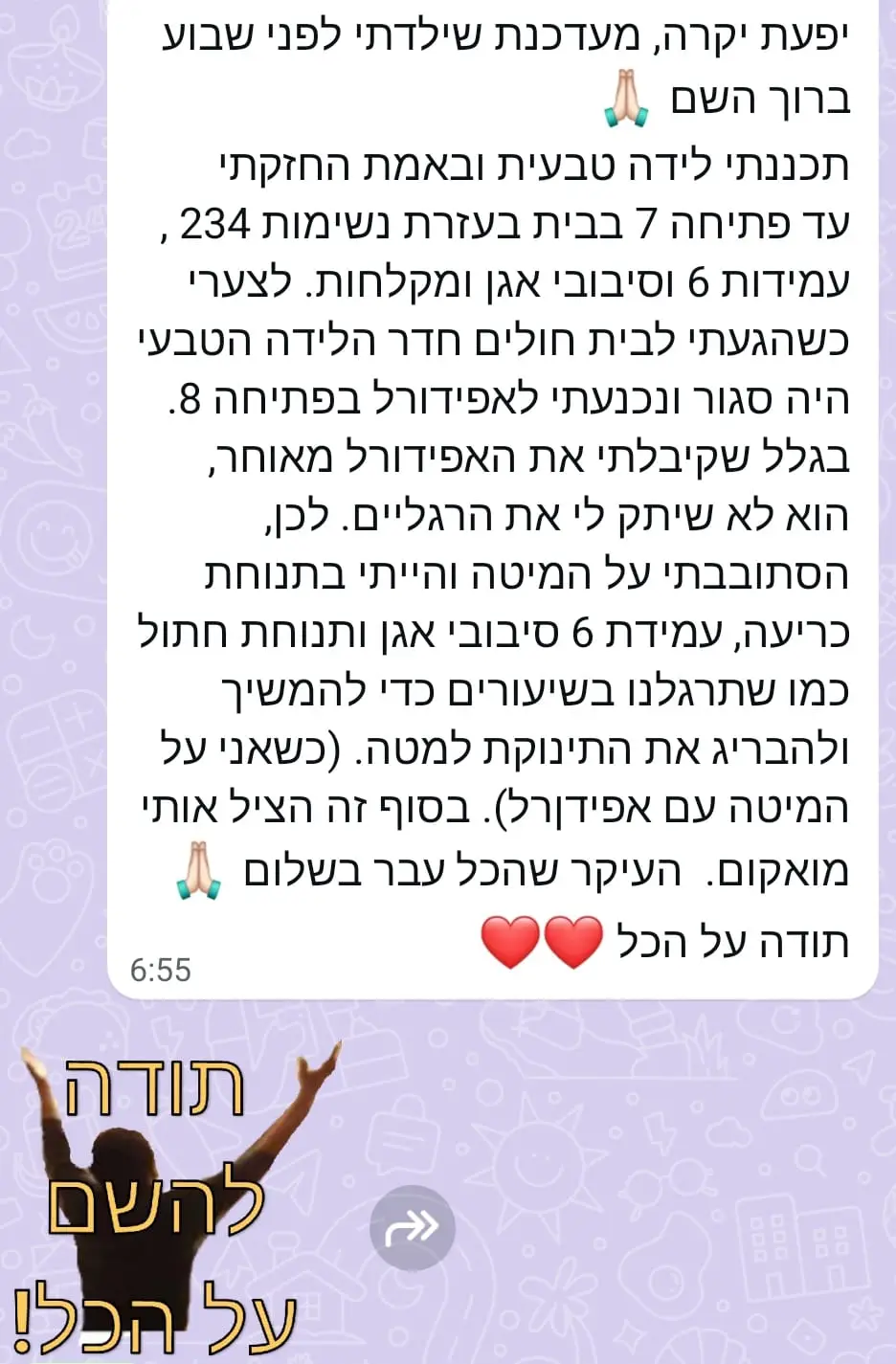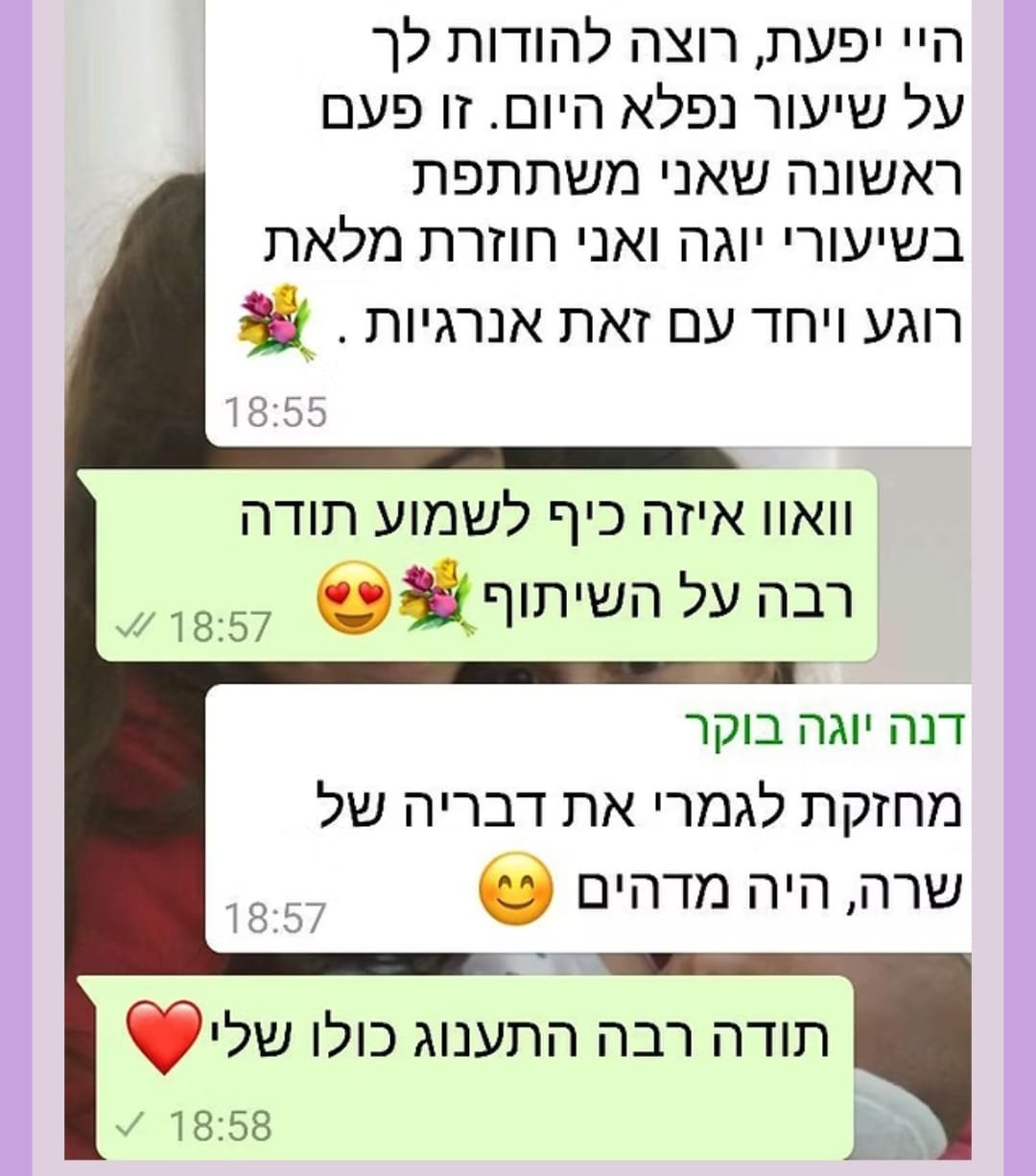 יחס אישי וחם – כל אישה שמגיעה אליי מקבלת הקשבה מלאה, נוכחות אמיתית וליווי בגובה העיניים, מתוך רגישות, אכפתיות וחיבור אישי עמוק.