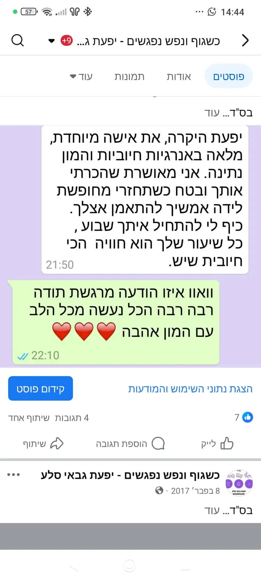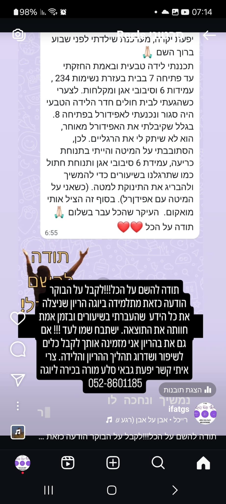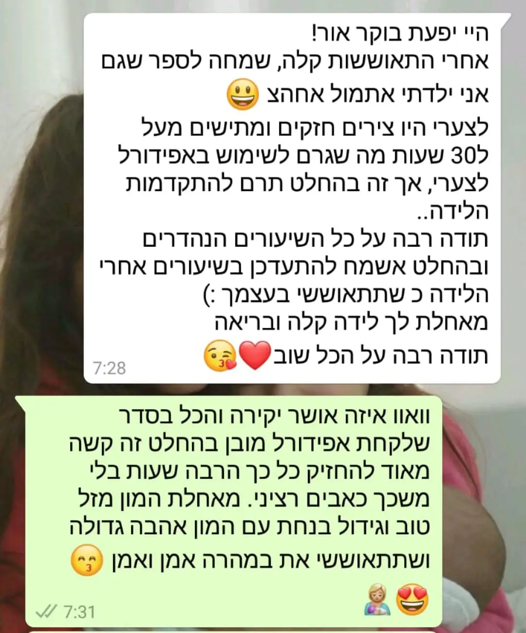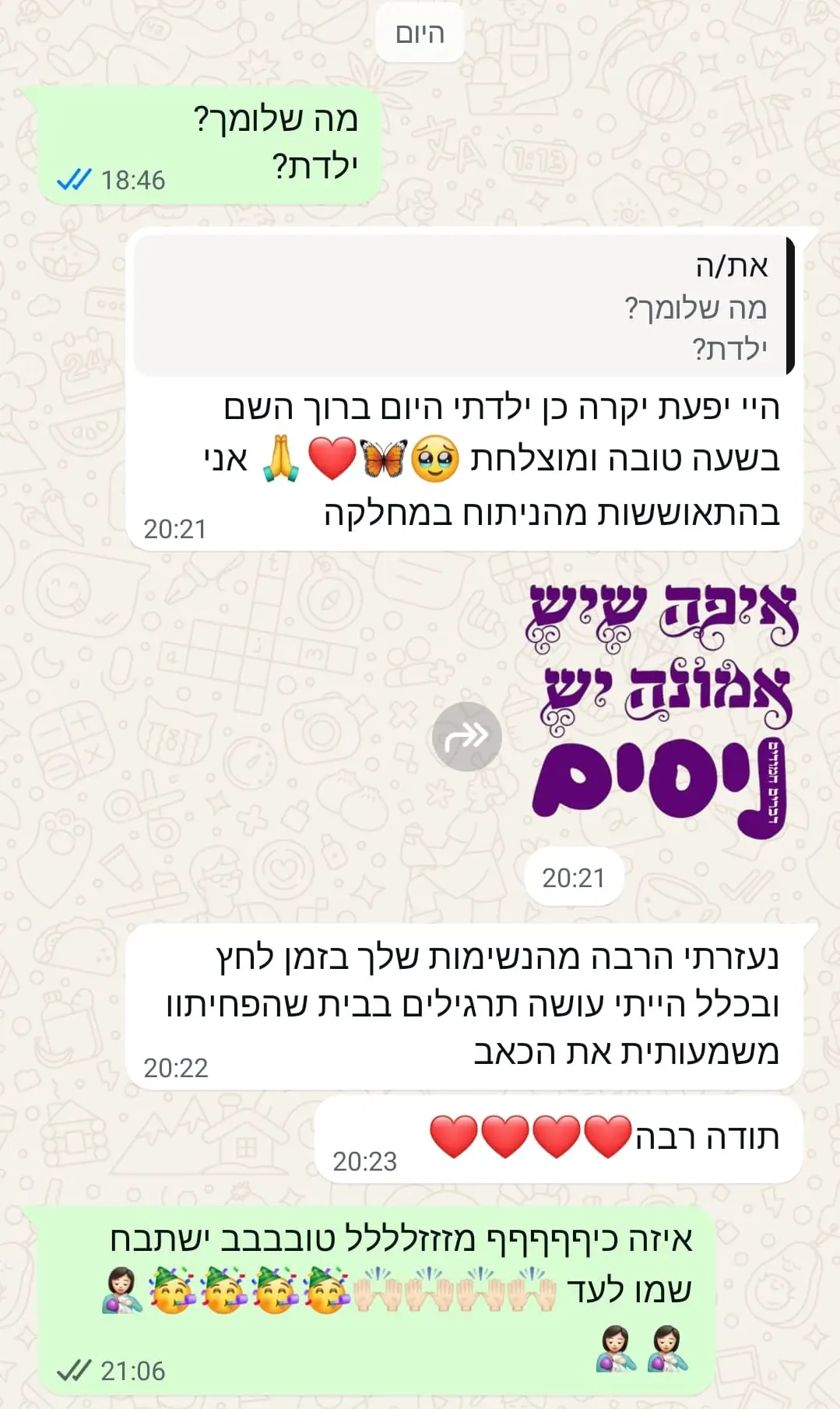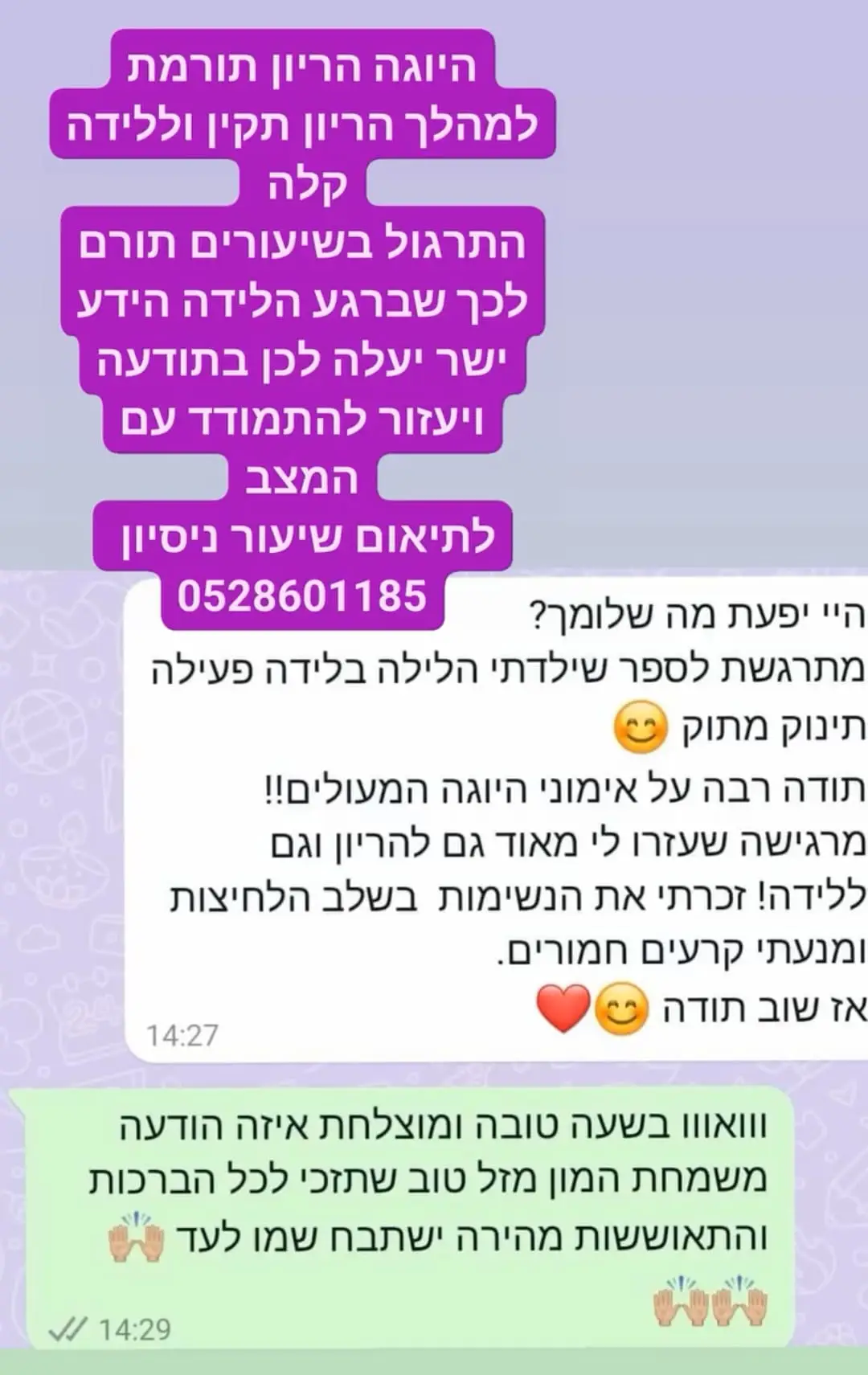 יחס אישי וחם – כל אישה שמגיעה אליי מקבלת הקשבה מלאה, נוכחות אמיתית וליווי בגובה העיניים, מתוך רגישות, אכפתיות וחיבור אישי עמוק.