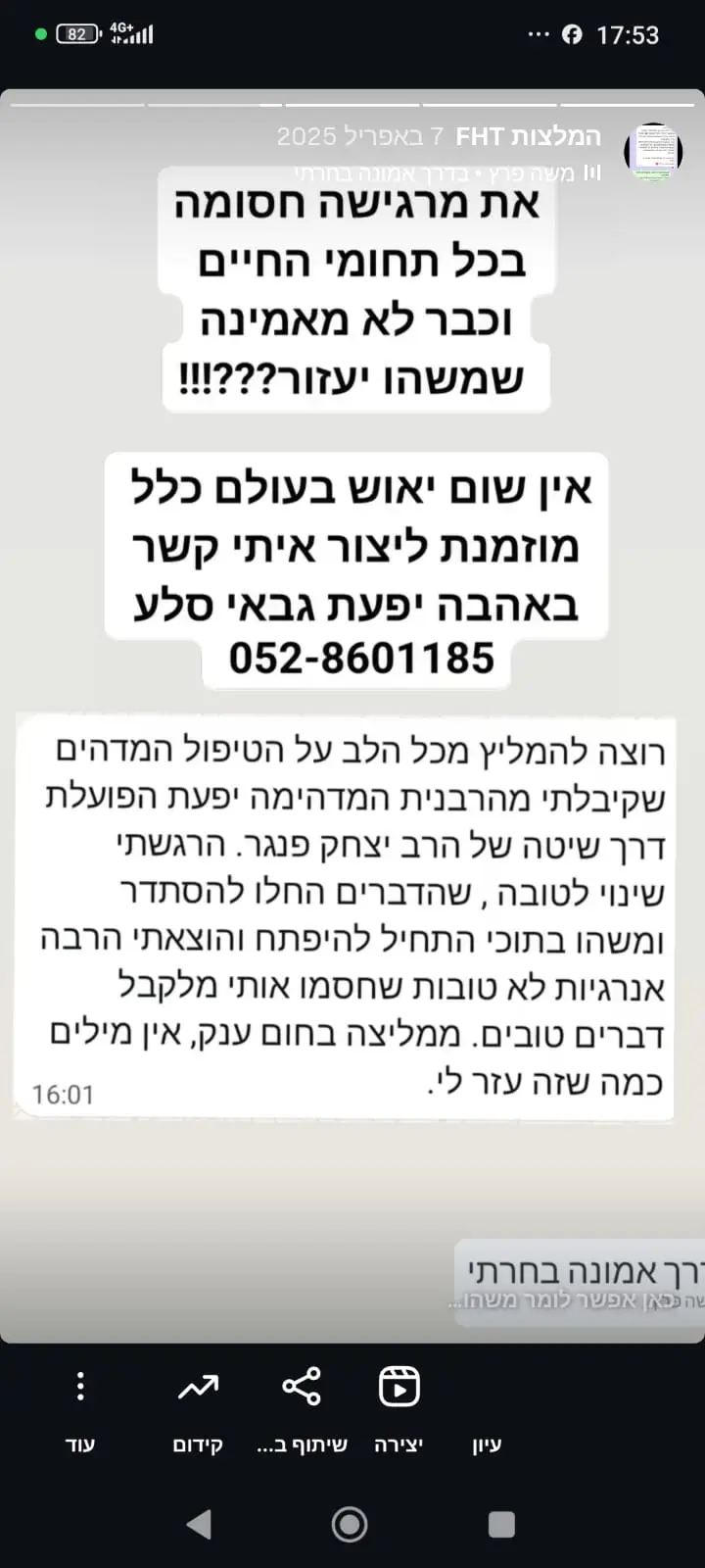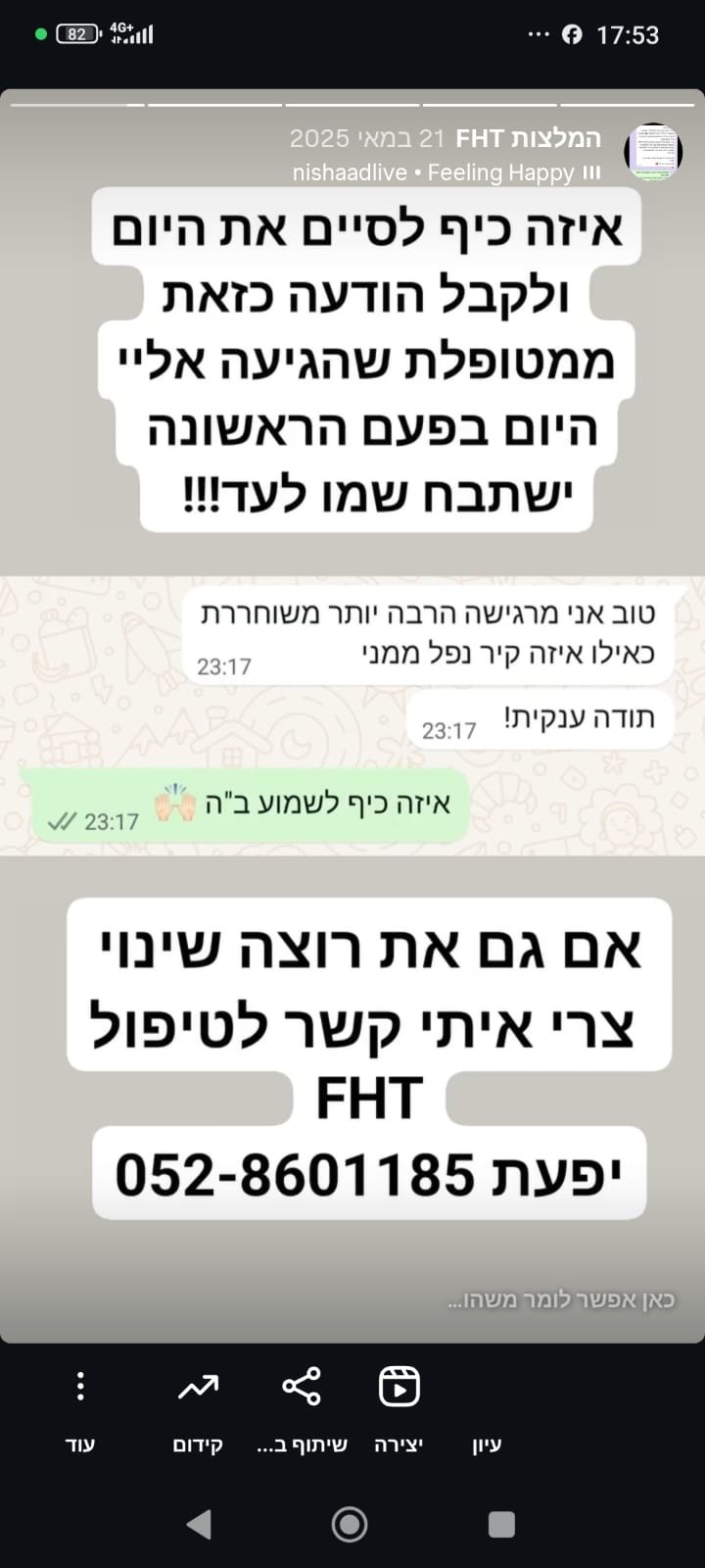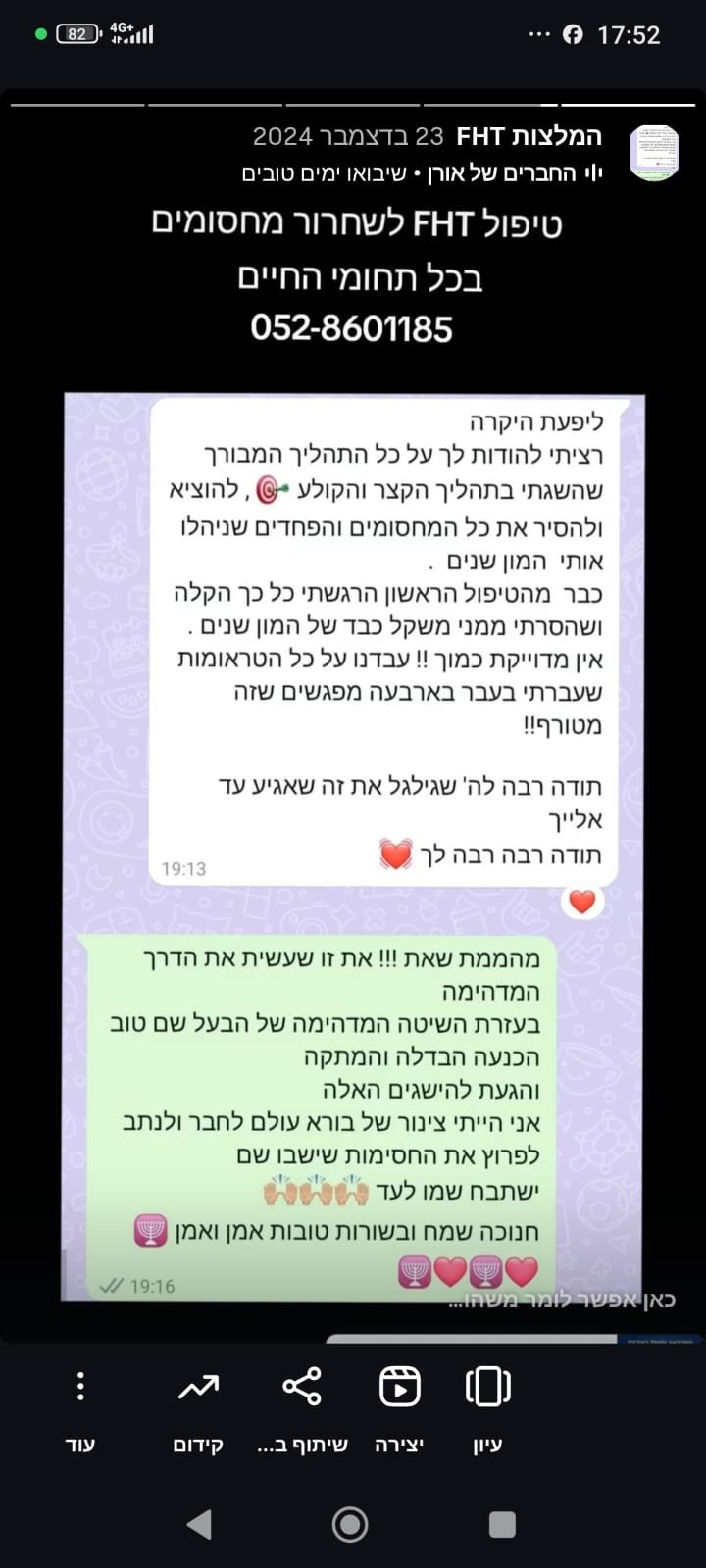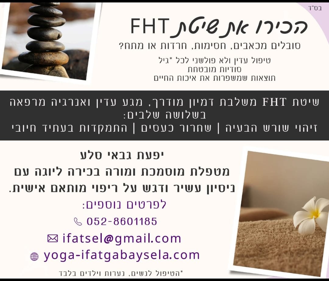 טיפולי FHT – טיפולים לריפוי הגוף והנפש, המסייעים לפרוץ מחסומים בכל תחומי החיים: בריאות פיזית ונפשית (פחדים, חרדות, דכאון וכו'), קריירה, מציאת זוגיות, פריון ושלום בית.