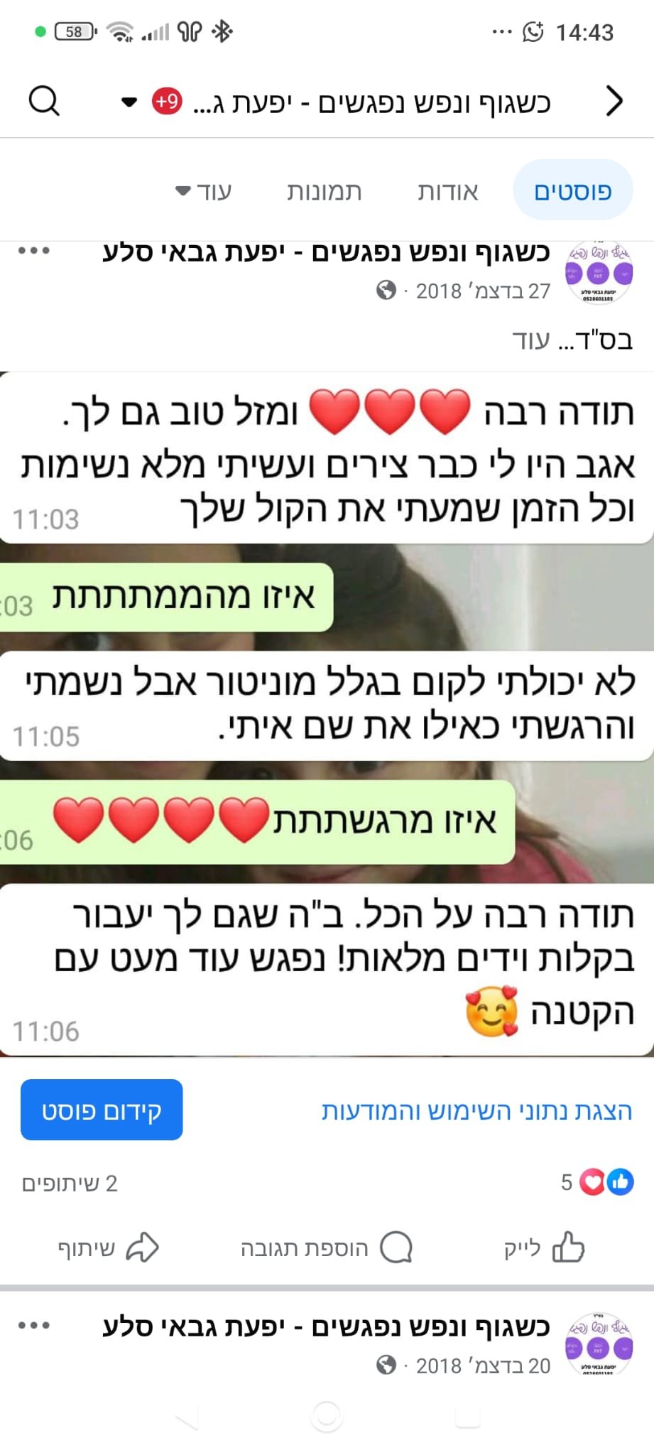 כשחוזרים מההפסקה אני מספרת מהסיפור האישי שלי של ניסי ניסים שעברתי.