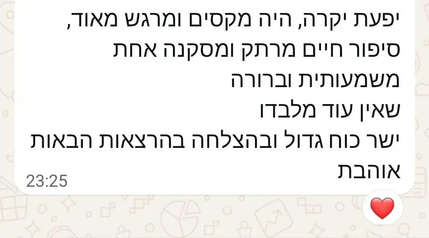 ההרצאה מועברת בצורה חמה, אישית ומחברת.