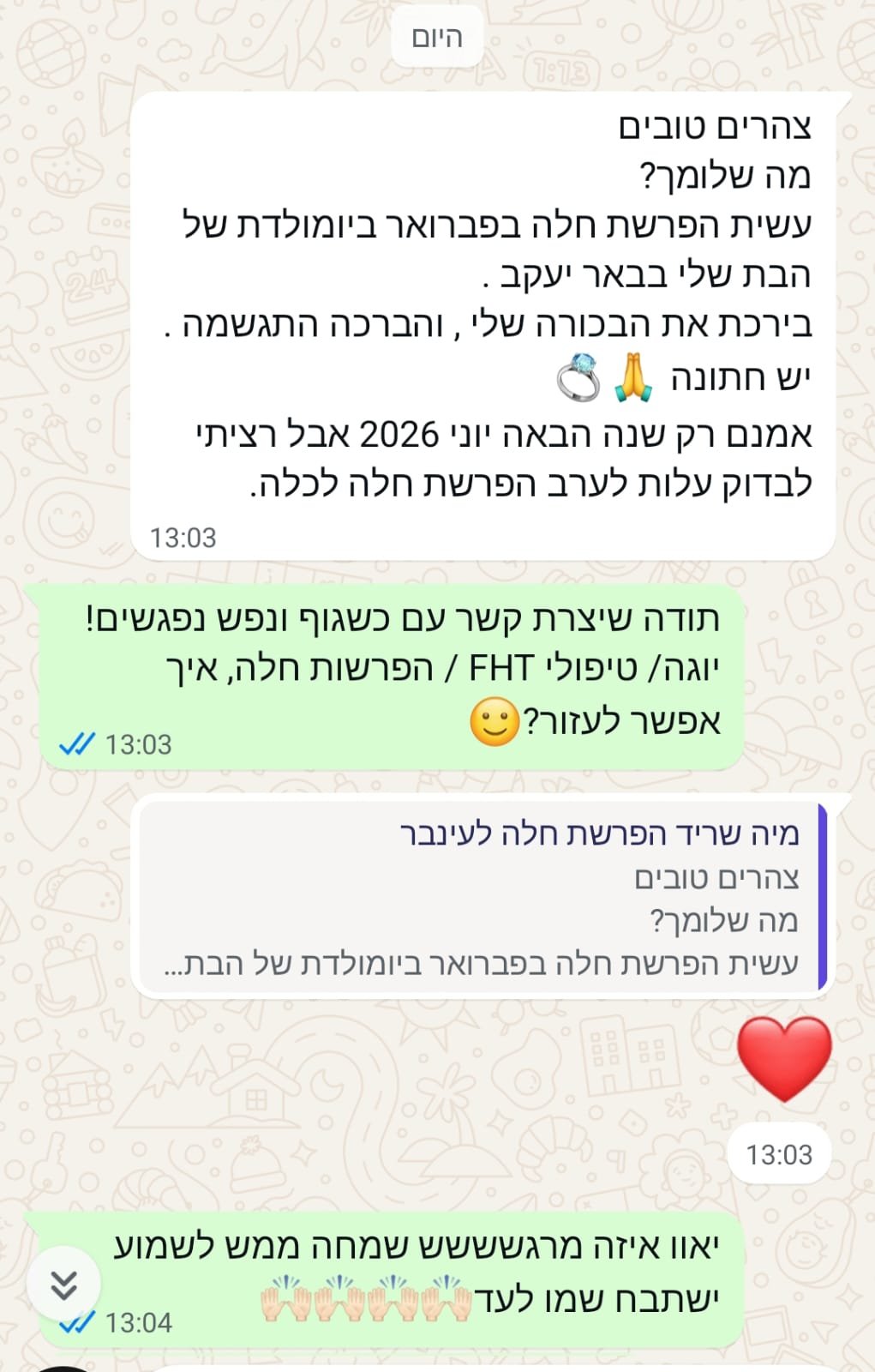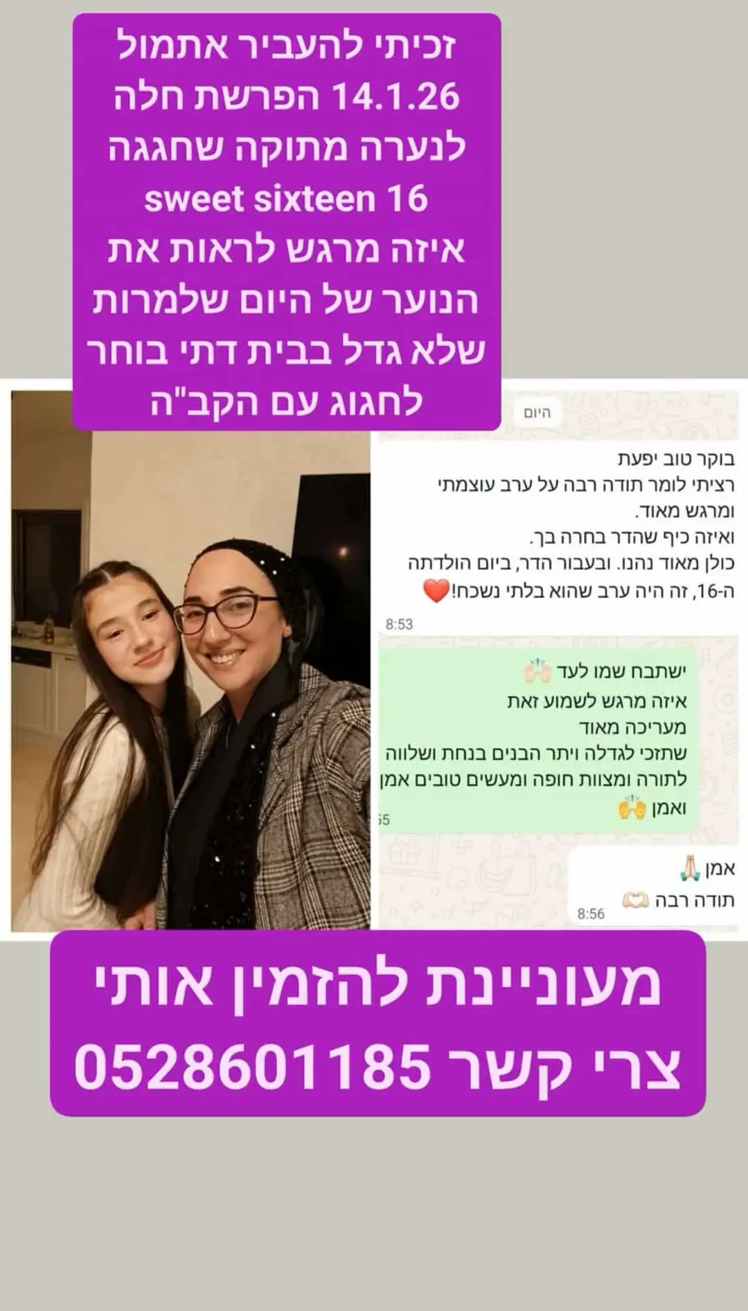 ערבי הפרשות חלה מרגשים מעצימים לכל מטרה : חתונה/ יום הולדת/ גיוס/ שחרור