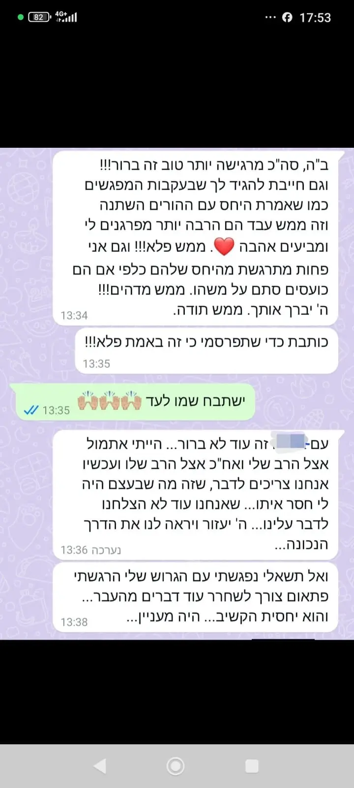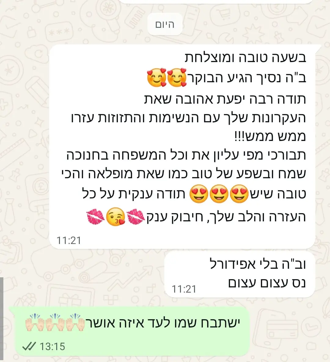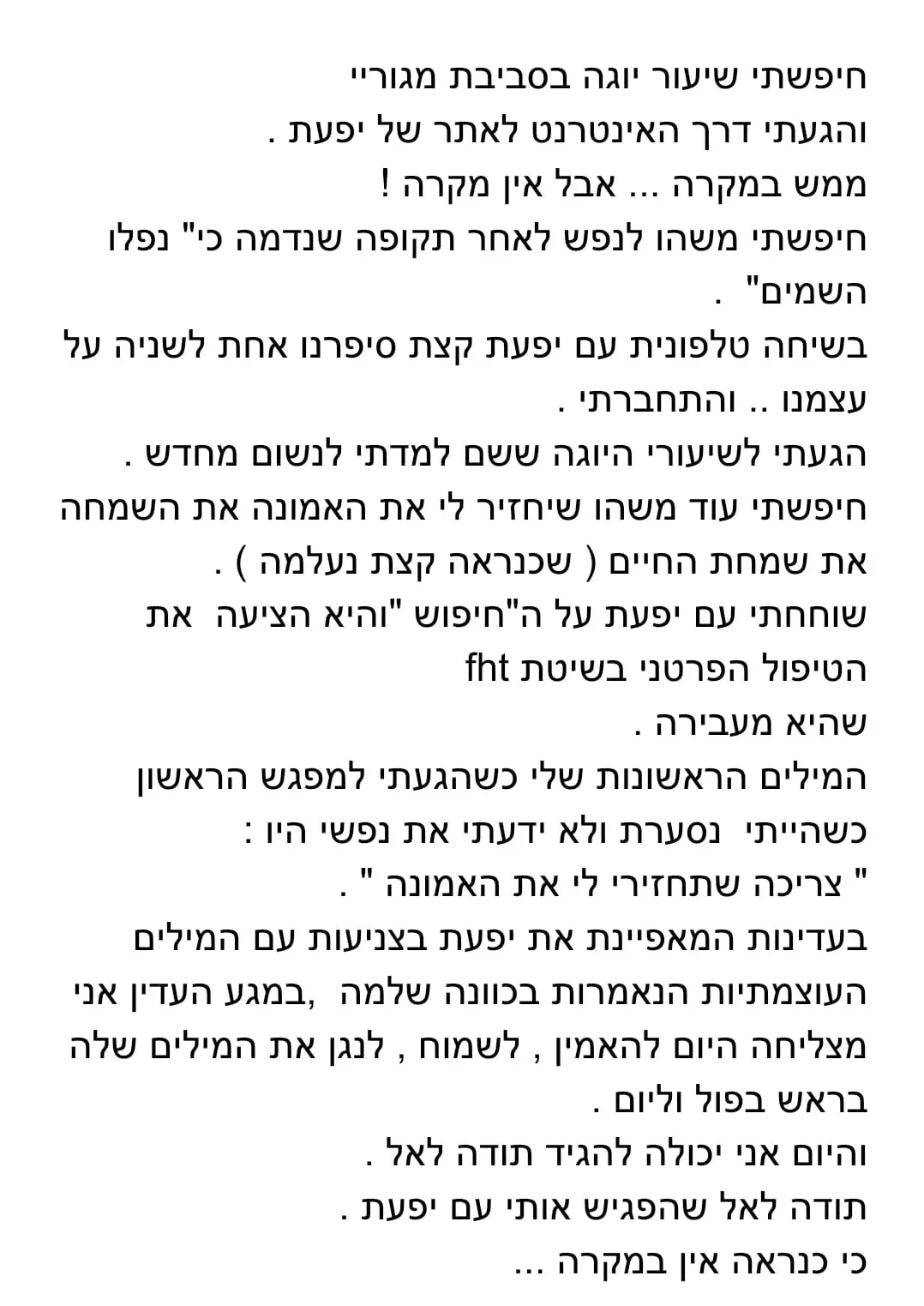 השגחה פרטית ושליחות אישית – אני מאמינה שכל לקוחה שמגיעה אליי הקב"ה שלח אותה אליי, כי אני המטפלת/מורה/מרצה/מנחה הראויה ביותר שהשם החליט עבורה.